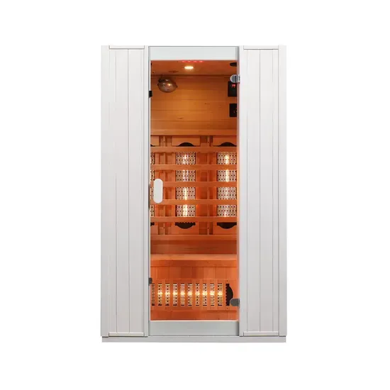 Šioje dviejų asmenų infraraudonųjų spindulių sausoje pirtyje yra aukščiausios kokybės hemlock medienos interjeras, žinomas dėl savo smulkių grūdų, puikaus stabilumo ir ilgalaikio patvarumo aukštoje temperatūroje. Mediena turi lengvą natūralų kvapą ir šiltą, švelnų prisilietimą, sukuria natūralesnę ir prabangesnę SPA atmosferą namuose.