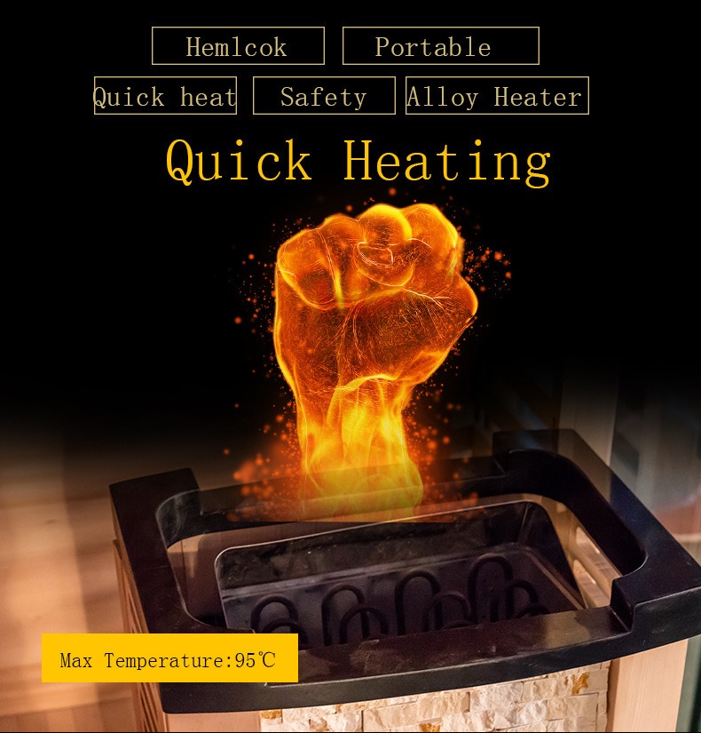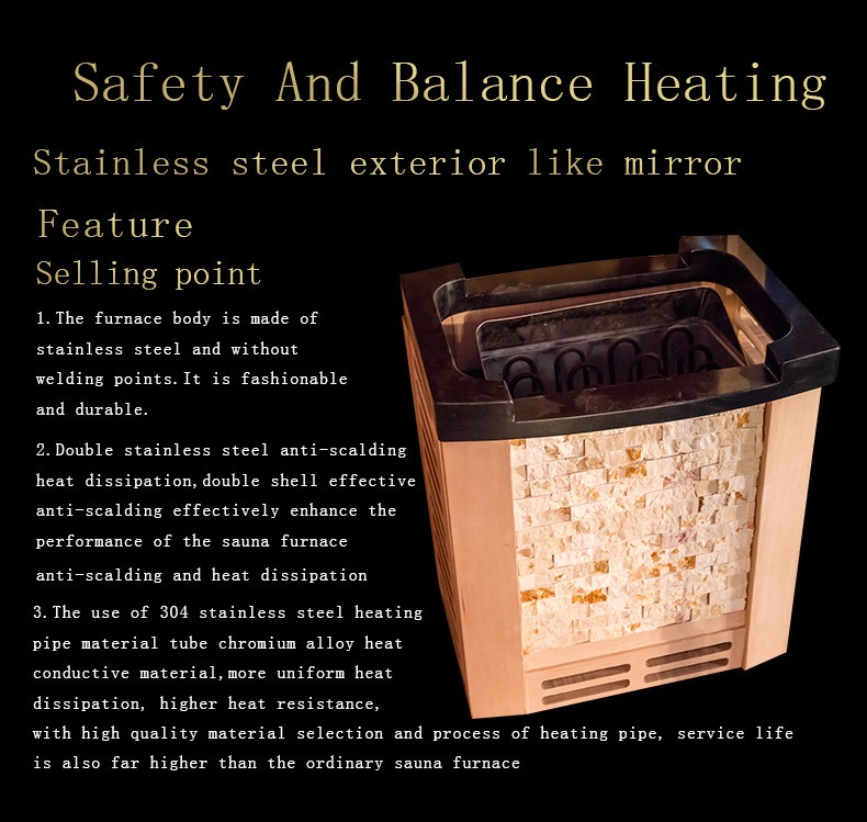 - Šildymo vamzdis pagamintas iš 304 nerūdijančio plieno chromo lydinio, kurio šilumos laidumas yra 30% didesnis nei įprastų šildymo vamzdžių, kad šiluma būtų tolygiau išsklaidyta. Jis gali atlaikyti aukštesnę nei 800 ℃ temperatūrą, pasižymi dideliu atsparumu oksidacijai ir tarnavimo laikui gerokai ilgiau nei įprastos pirties krosnys – iki 8-10 metų normaliai naudojant.