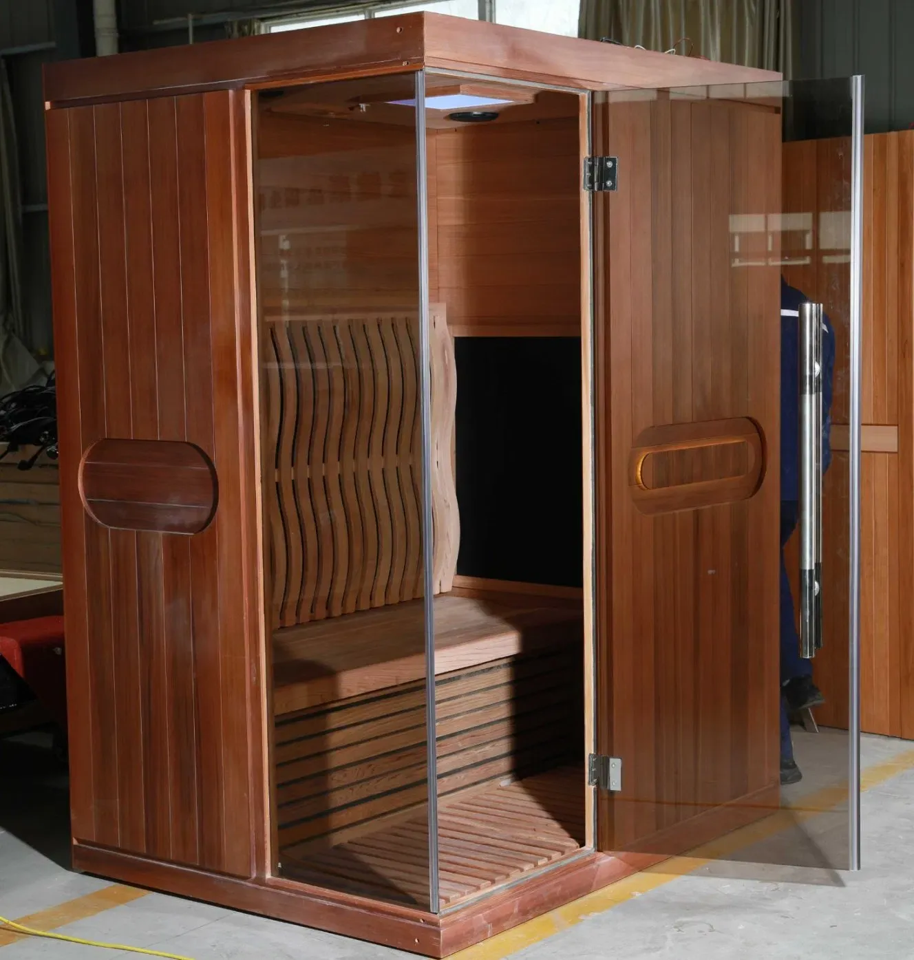 Šioje 2 asmenų infraraudonųjų spindulių saunoje modernus dizainas dera su gydomosiomis funkcijomis, idealiai tinka namų sveikatingumo reikmėms. Pagaminta iš aukštos kokybės hemlocko arba Kanados raudonojo kedro – medienos, vertinamo dėl savo patvarumo ir natūralaus aromato – ji suteikia aukščiausios kokybės saunos patirtį naudojant pažangią tolimojo infraraudonųjų spindulių šildymo technologiją.