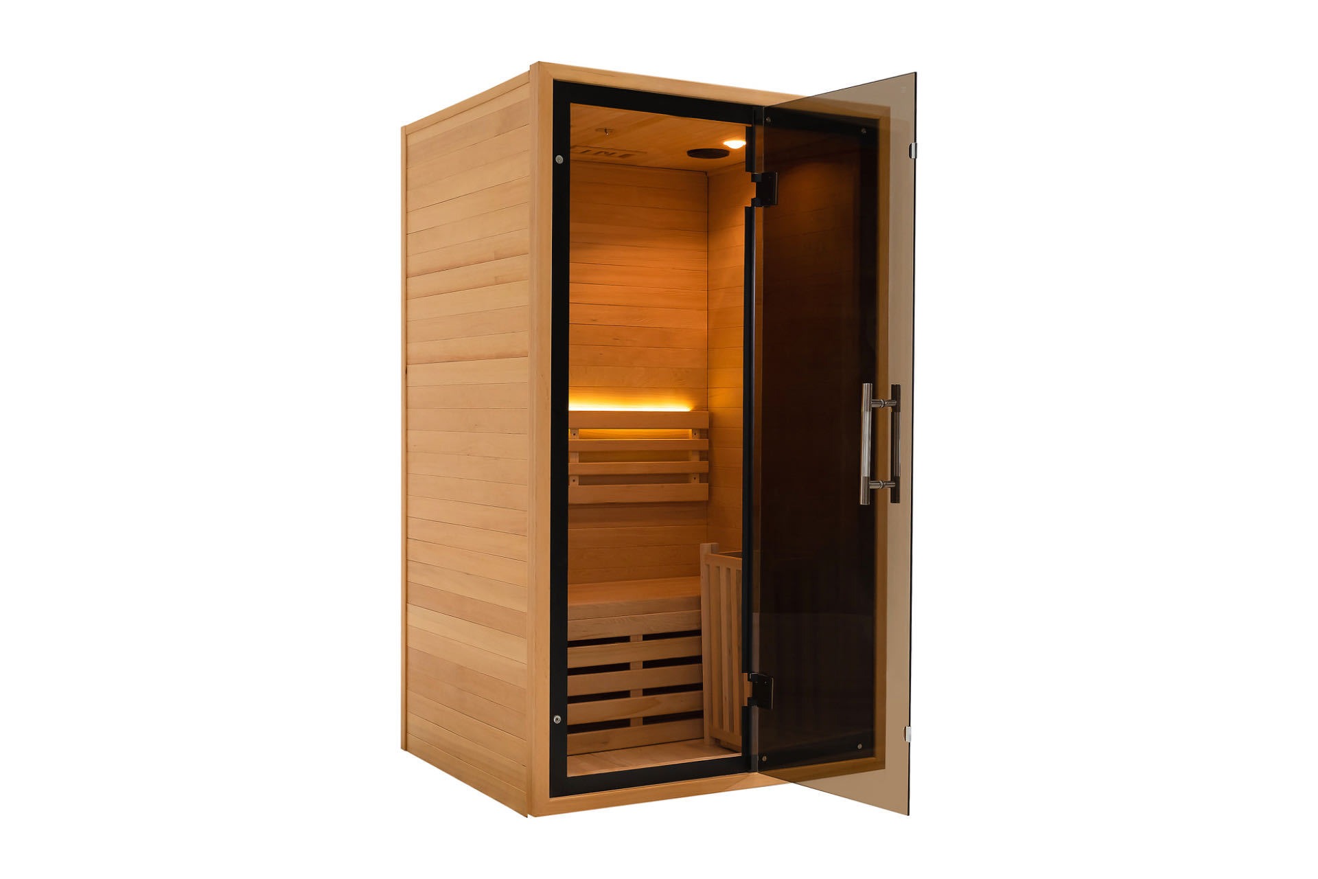 Šios pirties pagrindas – natūralus medžio masyvas, išmaniosios technologijos – pagrindas, o akcentas – pilkai juodos stiklo durys. Tai sukuria naują etaloną namų gerovei visais aspektais – nuo išvaizdos iki veikimo. Leiskite mėgautis profesionalaus lygio saunos priežiūra neišeinant iš namų ir pradėti gyventi sveikai ir stilingai derantį gyvenimo būdą.