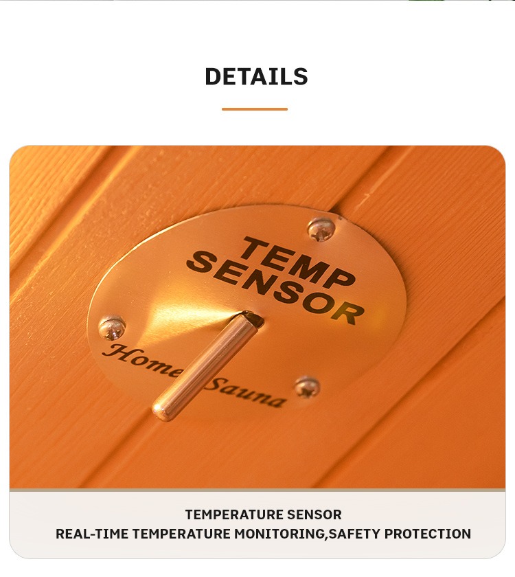 - Realaus laiko temperatūros valdymo sistema: Integruotas temperatūros jutiklis tiksliai stebi patalpų temperatūrą, kad užtikrintų saunos saugumą.