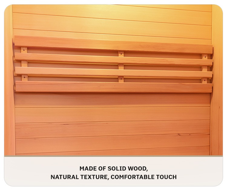 Pasirinktos dvi aukščiausios kokybės Kanados mediena – Hemlock ir Red Cedar. Mediena yra kieta ir patvari, skaidrios natūralios tekstūros ir vienodai elegantiškos spalvos. Natūralios kiekvienos medienos gabalo savybės suteikia pirčiai unikalią tekstūrą, įvedant natūralius ir aukščiausios klasės estetinius genus į jūsų namų sveikatingumo erdvę.vidaus infraraudonųjų spindulių pirtis namams.