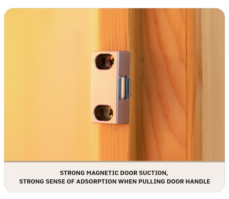 - Metaliniai vyriai ir magnetinis durų fiksatorius: Metaliniai vyriai turi didelę apkrovą be deformacijos, o magnetinis durų skląstis tvirtai adsorbuojasi, kad užrakintų šilumą ir privatumą.