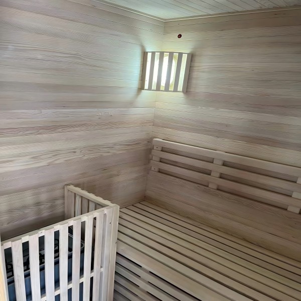 Dviejų asmenų lauko pirties patalpoje dažniausiai naudojamos efektyvios šildymo sistemos, tokios kaip elektriniai krosnelės ar malkomis kūrenamos krosnys, kurios per trumpą laiką gali greitai pakelti temperatūrą, kad būtų pasiekta ideali pirties temperatūra. Tuo pačiu metu pirties patalpoje taip pat įrengtas temperatūros reguliatorius, leidžiantis naudotojams reguliuoti temperatūrą pagal savo poreikius ir komfortą, užtikrinant pirties proceso saugumą ir komfortą.