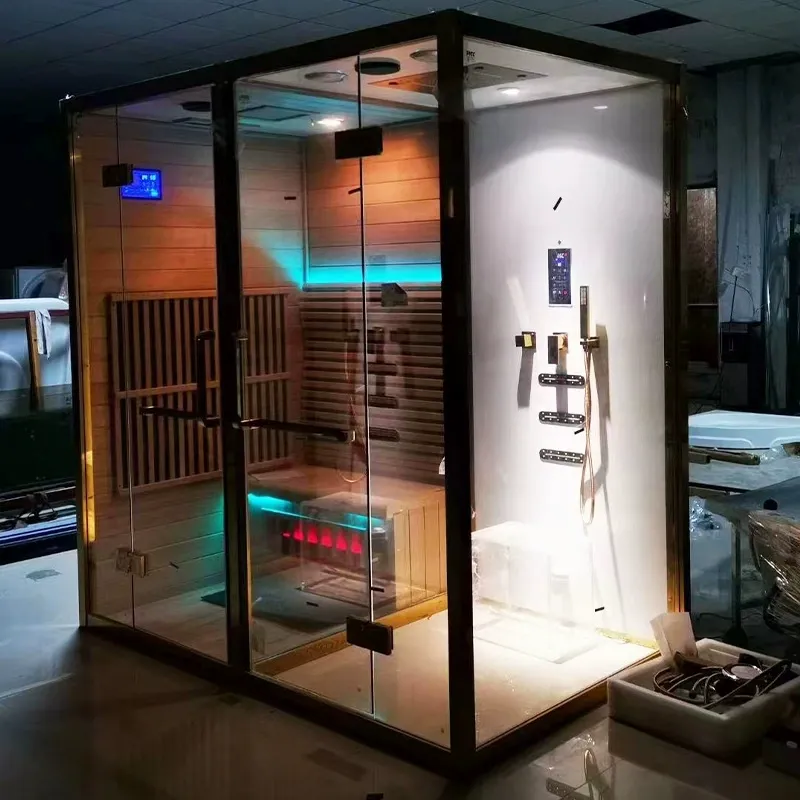 Įrengtos infraraudonųjų anglies kristalų šildymo plokštės, kartu su šlapio garo dušo funkcija.