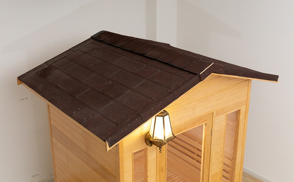 Stogas turi daugiasluoksnę vandeniui atsparią ir nuo saulės apsaugančią konstrukciją. Paplatintas karnizas gali efektyviai blokuoti lietaus vandenį nuo ardančio hemlocko, užtikrinant stabilų gaminio naudojimą įvairiose lauko aplinkose. Bendra forma sumaniai sujungia natūralią hemlocko tekstūrą su Fengshui viršutinėmis stiklinėmis durelėmis ir retro sieniniu šviestuvu, tapdama „naudotu kraštovaizdžio objektu“ kieme ir suteikia lauko erdvei nepakartojamo žavesio.