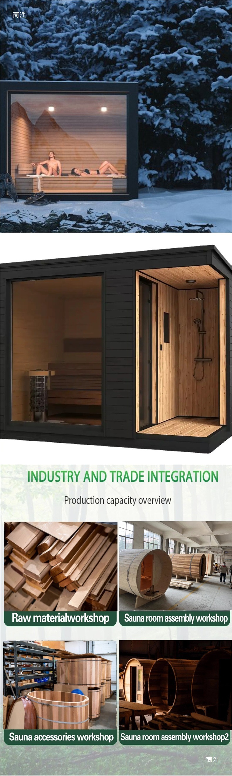 - Žaliavų kontrolė: atrinkti importuoti antikoroziniai rąstai ir maistinės pirties krosnelės medžiagos užtikrina ekologiškumą, atsparumą karščiui ir ilgaamžiškumą iš šaltinio, atitinkančius nacionalinius aplinkosaugos ir saugos standartus.