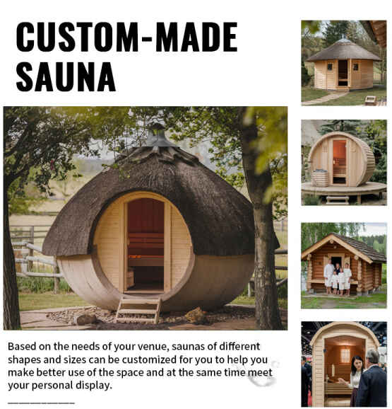 Formos pritaikymas: dėmesys sutelkiamas į lauko sąlygomis pritaikytas formas, tokias kaip statinės formos, medinio namo formos ir sferinės, subalansuojant erdvės panaudojimą ir natūralią estetiką. Nesvarbu, ar kiemo kampeliuose, ar stovyklavietėse,Stiklinės lauko durys lauko garinėgali harmoningai integruotis su lauko aplinka, pavyzdžiui, žaliais augalais ir uolomis.